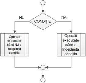 Întotdeauna ramura din dreapta va corespunde valorii “ADEVÃRAT” (“DA”, condiția este îndeplinitã), iar cea din stânga valorii “FALS” (“NU”, condiția NU este îndeplinitã);