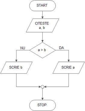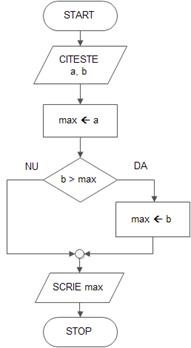 În varianta a doua, pe lângã variabilele a și b, folosite pentru a reține cele douã numere citite, se utilizeazã o alta, numitã max;
