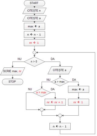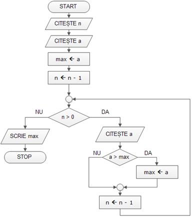 Algoritmul de determinare a maximului a n numere are în pseudocod forma de mai jos, iar